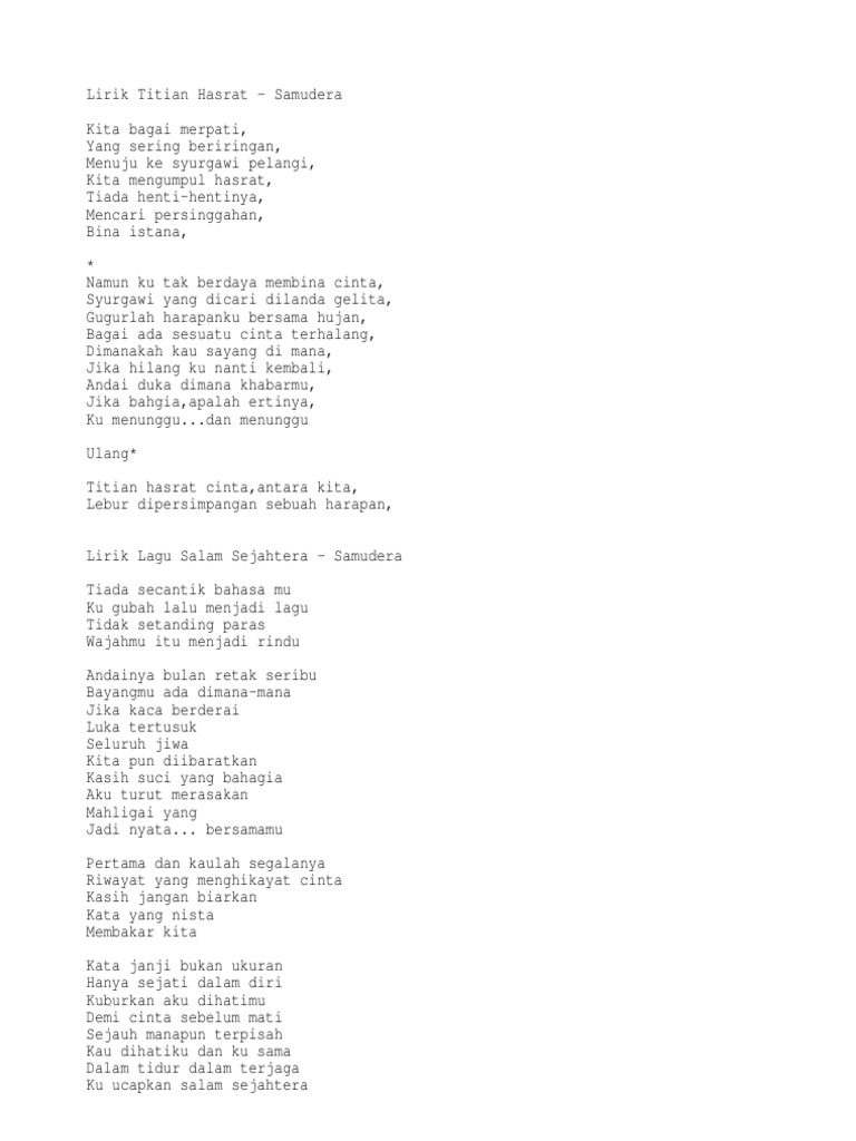 Niatkan hati yang takkan dipersia Selama mungkin bersama Selamat selamanya tapi Andai rencana kita berkubur di antara Curahkan mu rahmat-Nya Pintaku pada yang Esa Jadi. Saya tahu akhir-akhir ini kita sedang kesal dengan hal-hal yang kemarin biasa saja eh sekarang jadi masalah. Pernah satu hati mengisi hidupku dulu.